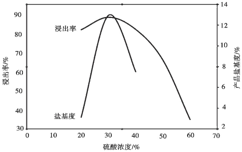 硫酸濃度對鐵浸出率和聚合硫酸鐵鹽基度的影響